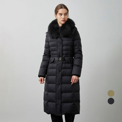 올리비아로렌 여성용 폭스 벨티드 롱 다운 패딩은
